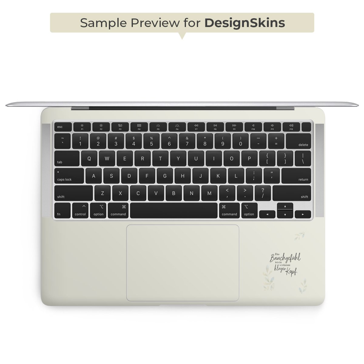 Die langlebige Premium Vinyl-Folie wird durch ein glänzendes Schutzlaminat verstärkt und hält somit Deinen Laptop, egal ob Rückseite oder Tastatur frei von Kratzern. Die Premium-Folie ist hauchdünn und trägt kaum auf. Die Grundfarbe der DesignSkins® ist weiß.