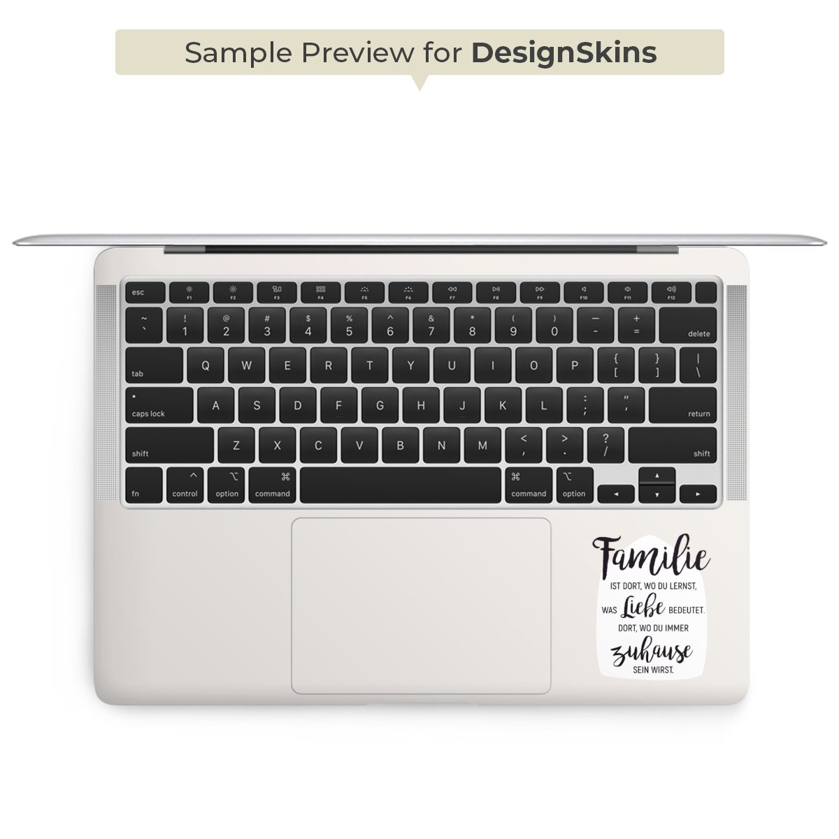 Die langlebige Premium Vinyl-Folie wird durch ein glänzendes Schutzlaminat verstärkt und hält somit Deinen Laptop, egal ob Rückseite oder Tastatur frei von Kratzern. Die Premium-Folie ist hauchdünn und trägt kaum auf. Die Grundfarbe der DesignSkins® ist weiß.