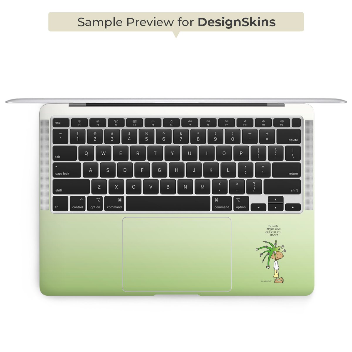 Die langlebige Premium Vinyl-Folie wird durch ein glänzendes Schutzlaminat verstärkt und hält somit Deinen Laptop, egal ob Rückseite oder Tastatur frei von Kratzern. Die Premium-Folie ist hauchdünn und trägt kaum auf. Die Grundfarbe der DesignSkins® ist weiß.