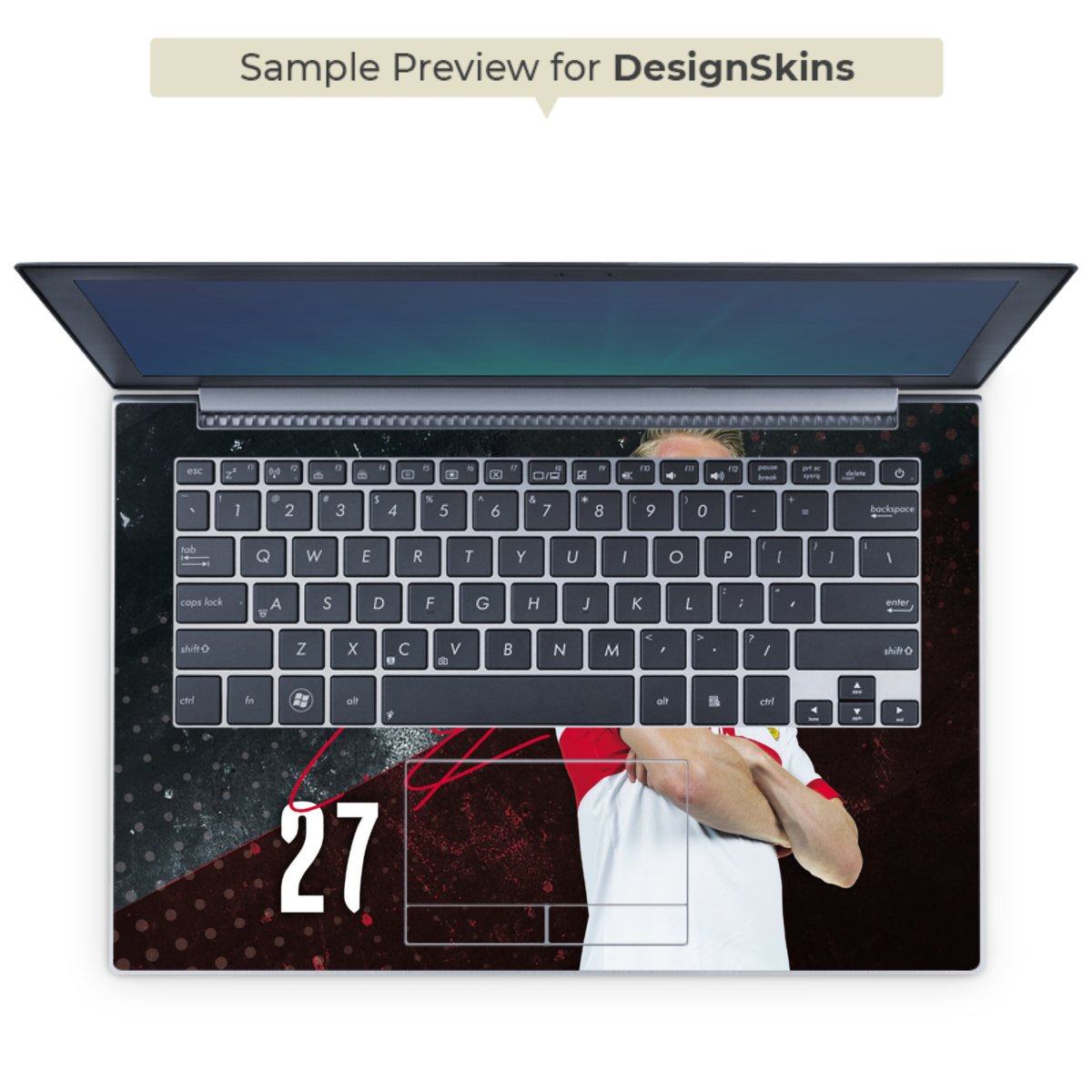 Die langlebige Premium Vinyl-Folie wird durch ein glänzendes Schutzlaminat verstärkt und hält somit Deinen Laptop, egal ob Rückseite oder Tastatur frei von Kratzern. Die Premium-Folie ist hauchdünn und trägt kaum auf. Die Grundfarbe der DesignSkins® ist weiß.