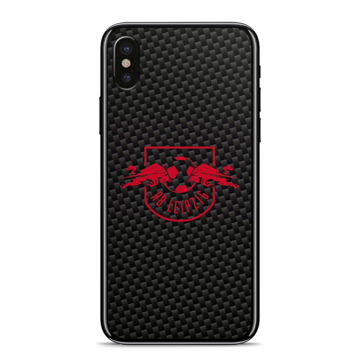 Rotes RB Leipzig Logo auf Carbonoptik