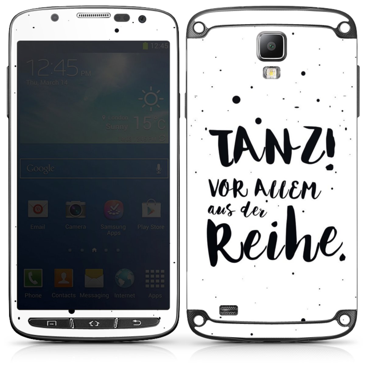 Die langlebige Premium Vinyl-Folie wird durch ein mattes Schutzlaminat verstärkt und hält somit Dein Handy frei von Kratzern. Die Premium-Folie ist hauchdünn und trägt kaum auf, egal ob Vorder- oder Rückseite Deines Smartphones. Die Grundfarbe der DesignSkins® ist weiß.