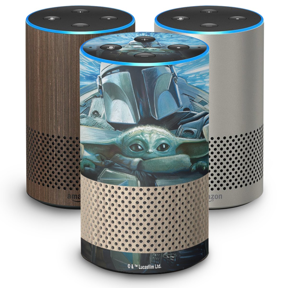 Grogu und Mando fliegen blau
