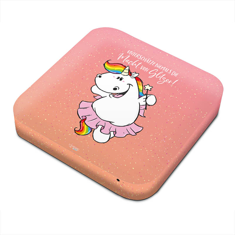 Das flauschige Pummeleinhorn hat ein Herz aus Gold und die Hände stets voller Cookies. In der Glitzerwelt lebt es zusammen mit seinen Freunden und genießt das Leben in vollen Zügen. Getreu dem Motto „Be real, not perfect!“ kann sich hier jeder wohlfühlen und wird für keine Macke verurteilt.