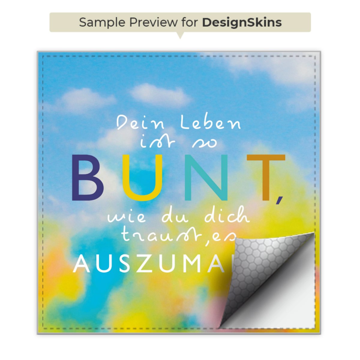 Entscheide Dich für einen Spruch, der zu 100% aussagt wofür Du einstehst. Zusätzlich kannst Du zu Deinem ausgewählten Spruch ein passendes Motiv kombinieren, sodass Dein Smartphone optisch was zu bieten hat. Doch nicht nur für das Aussehen sorgen wir, sondern auch zuverlässigen Schutz vor unschönen Alltagsgebrauchsspuren garantieren wir Dir. DeinDesign steht für innovative Drucktechnologie und hochwertige Materialien.