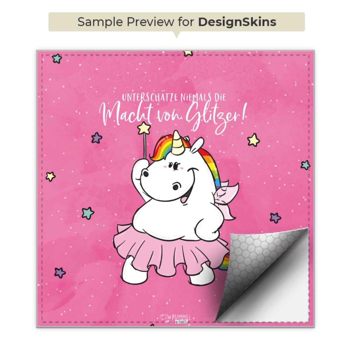 Mit den neuen Motiven des Kulteinhorns und den magischen Wesen aus der Glitzerwelt kannst Du Deine Alltagsbegleiter wie Dein Handy, Laptop oder Deine Spielekonsole bunt färben und eine extra Portion Freude verbreiten. Jeder Charakter hat seine individuellen Eigenarten und vertritt besondere Werte, wie Toleranz, Akzeptanz, Durchhaltevermögen und viele andere.