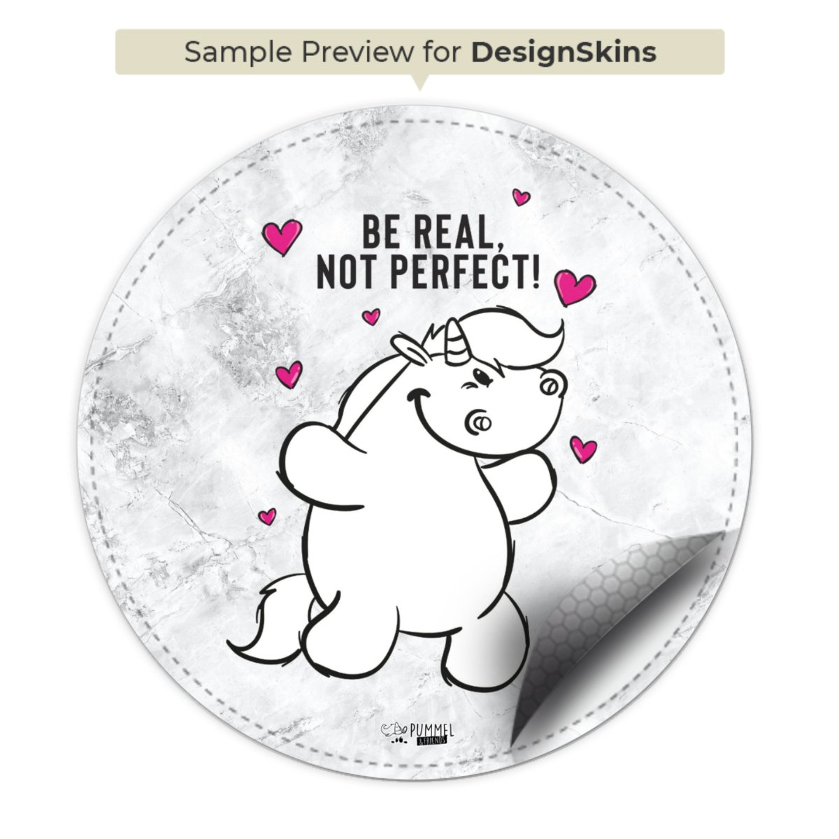 Das flauschige Pummeleinhorn hat ein Herz aus Gold und die Hände stets voller Cookies. In der Glitzerwelt lebt es zusammen mit seinen Freunden und genießt das Leben in vollen Zügen. Getreu dem Motto „Be real, not perfect!“ kann sich hier jeder wohlfühlen und wird für keine Macke verurteilt.