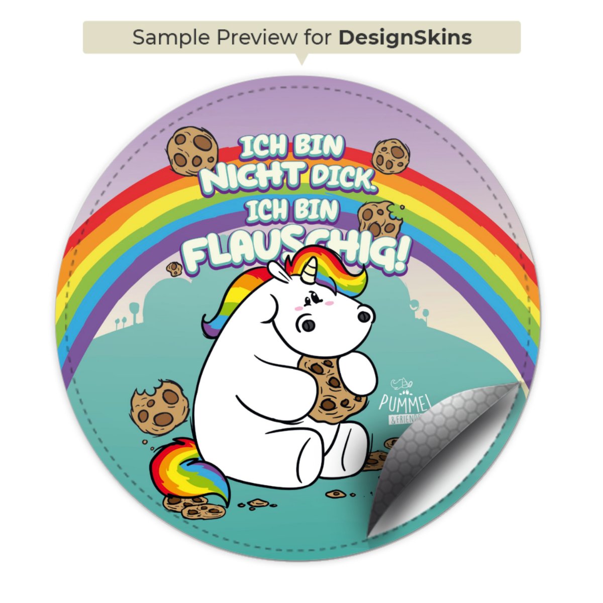 Das flauschige Pummeleinhorn hat ein Herz aus Gold und die Hände stets voller Cookies. In der Glitzerwelt lebt es zusammen mit seinen Freunden und genießt das Leben in vollen Zügen. Getreu dem Motto „Be real, not perfect!“ kann sich hier jeder wohlfühlen und wird für keine Macke verurteilt.