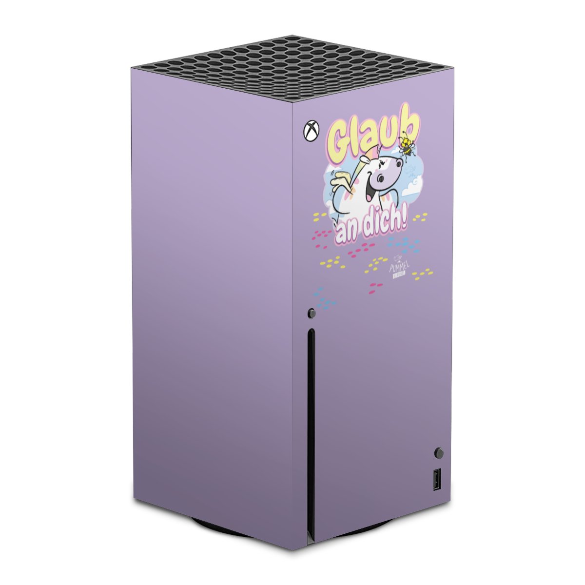 Mit den neuen Motiven des Kulteinhorns und den magischen Wesen aus der Glitzerwelt kannst Du Deine Alltagsbegleiter wie Dein Handy, Laptop oder Deine Spielekonsole bunt färben und eine extra Portion Freude verbreiten. Jeder Charakter hat seine individuellen Eigenarten und vertritt besondere Werte, wie Toleranz, Akzeptanz, Durchhaltevermögen und viele andere.