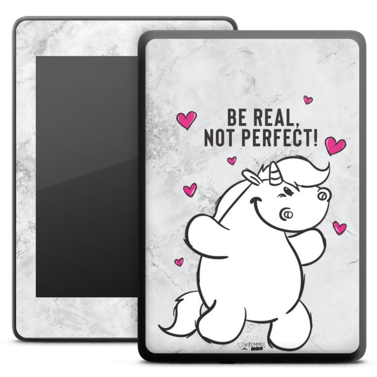Die langlebige Premium Vinyl-Folie wird durch ein mattes Schutzlaminat verstärkt und hält somit Dein E-Reader, egal ob Vorder- oder Rückseite, frei von Kratzern. Die Premium-Folie ist hauchdünn und trägt kaum auf. Die Grundfarbe der Folie ist weiß.