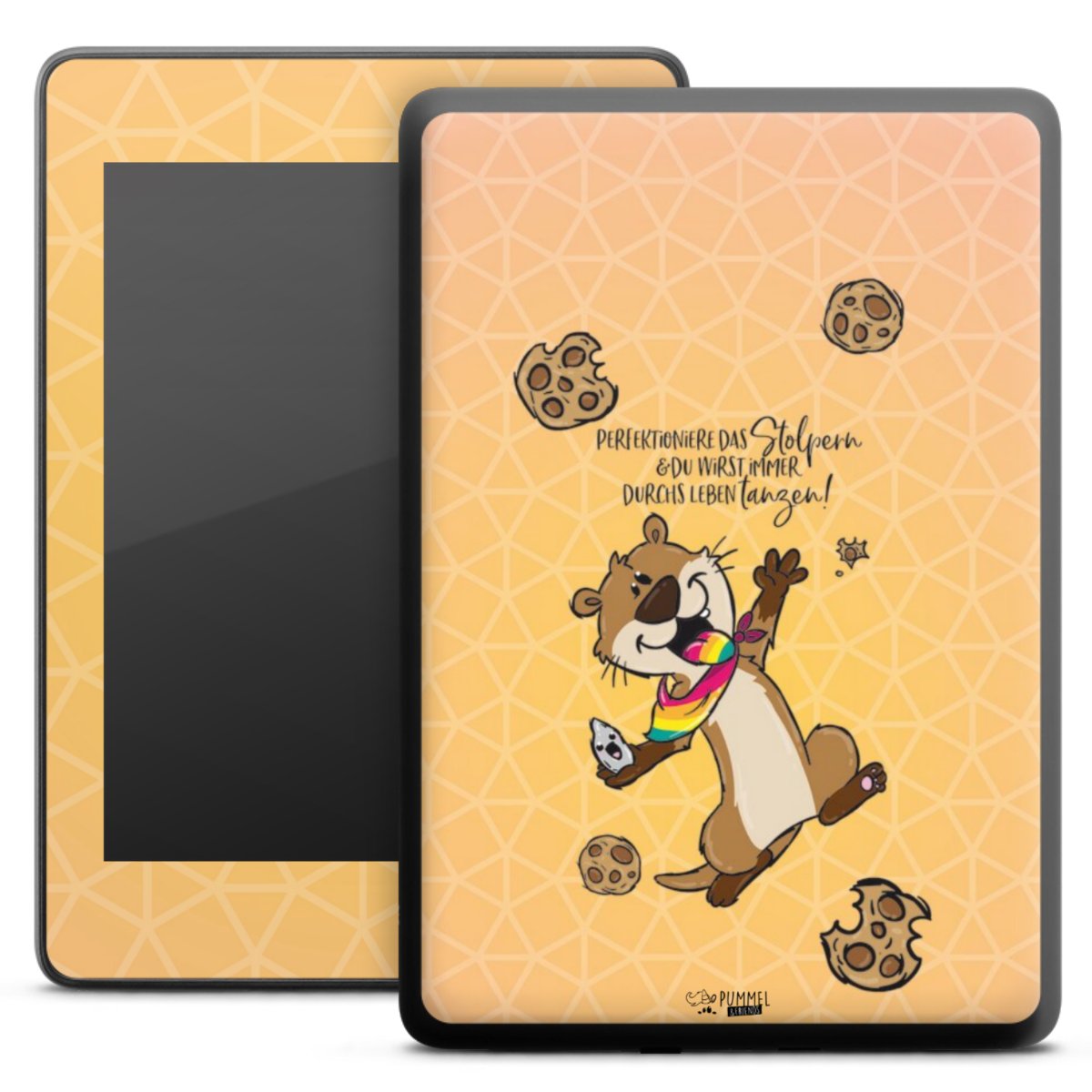 Die langlebige Premium Vinyl-Folie wird durch ein mattes Schutzlaminat verstärkt und hält somit Dein E-Reader, egal ob Vorder- oder Rückseite, frei von Kratzern. Die Premium-Folie ist hauchdünn und trägt kaum auf. Die Grundfarbe der Folie ist weiß.