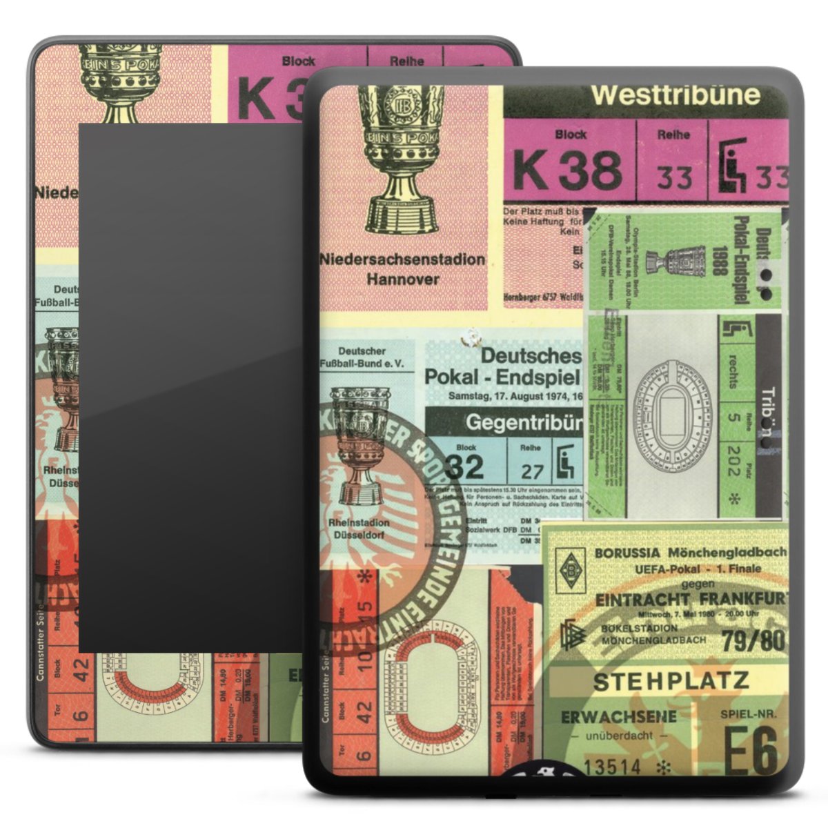 Bei dieser Vinyl-Folie nutzen wir das solide Direktdruck-Verfahren mit einer anschließenden matten Laminierung. Der Druckbereich umfasst den ganzen Bereich. Die E-Reader-Folie kann sowohl unbedruckt, als auch vollflächig oder partiell bedruckt bestellt werden.