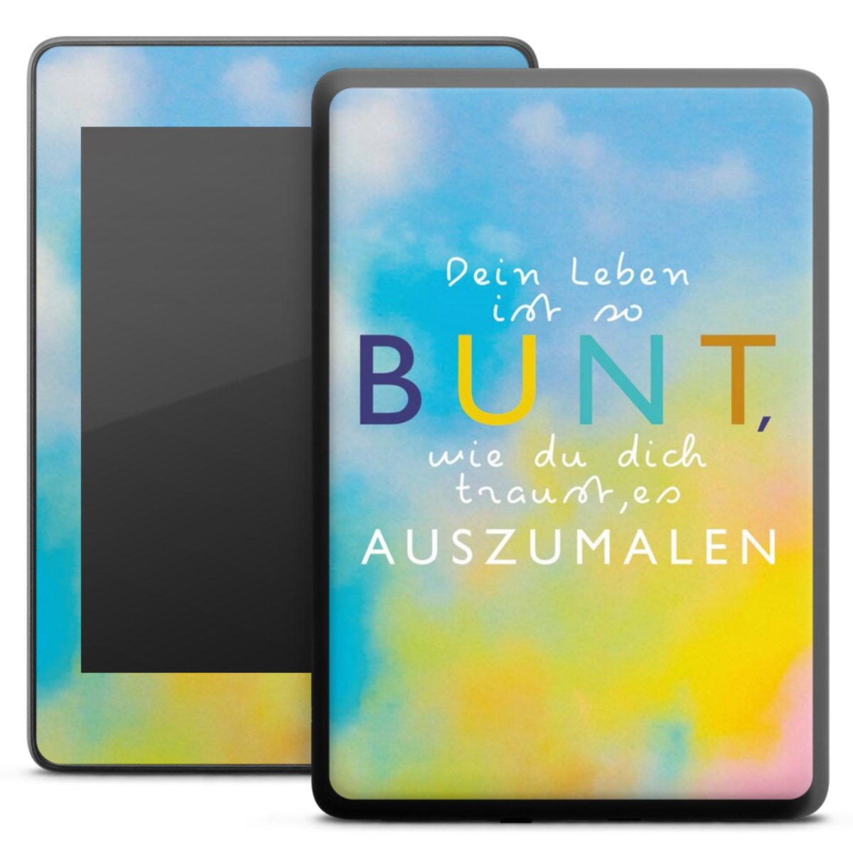 Die langlebige Premium Vinyl-Folie wird durch ein mattes Schutzlaminat verstärkt und hält somit Dein E-Reader, egal ob Vorder- oder Rückseite, frei von Kratzern. Die Premium-Folie ist hauchdünn und trägt kaum auf. Die Grundfarbe der Folie ist weiß.
