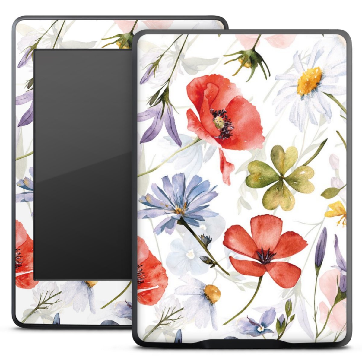 Die langlebige Premium Vinyl-Folie wird durch ein mattes Schutzlaminat verstärkt und hält somit Dein E-Reader, egal ob Vorder- oder Rückseite, frei von Kratzern. Die Premium-Folie ist hauchdünn und trägt kaum auf. Die Grundfarbe der Folie ist weiß.