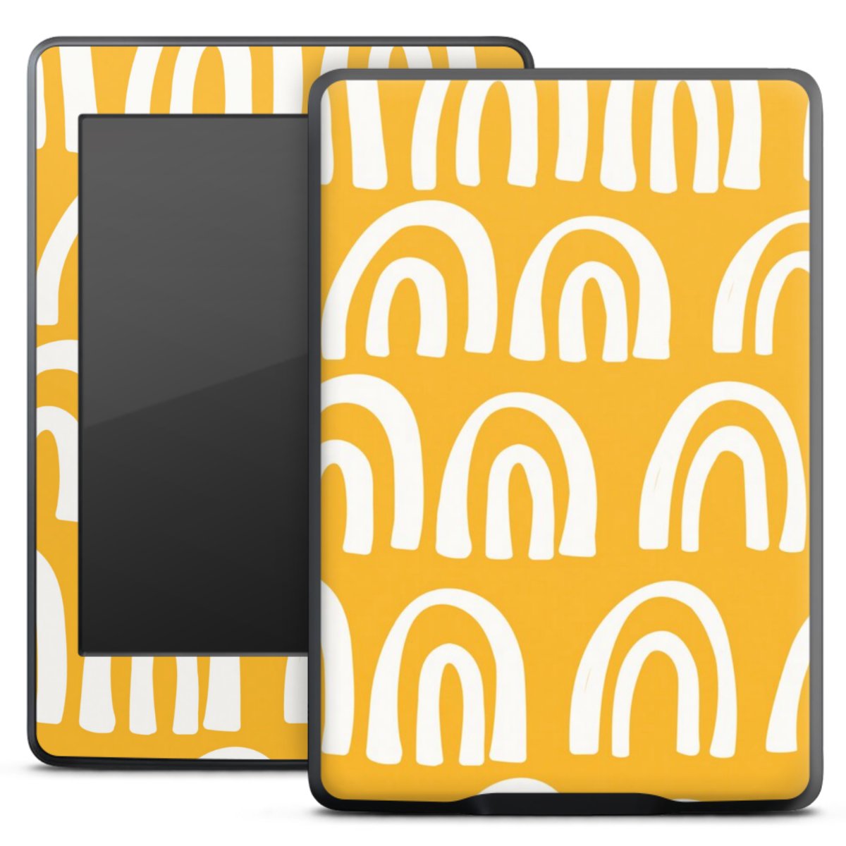 Die langlebige Premium Vinyl-Folie wird durch ein mattes Schutzlaminat verstärkt und hält somit Dein E-Reader, egal ob Vorder- oder Rückseite, frei von Kratzern. Die Premium-Folie ist hauchdünn und trägt kaum auf. Die Grundfarbe der Folie ist weiß.