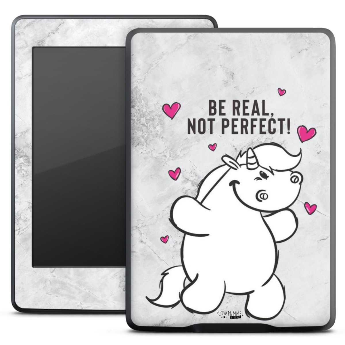 Die langlebige Premium Vinyl-Folie wird durch ein mattes Schutzlaminat verstärkt und hält somit Dein E-Reader, egal ob Vorder- oder Rückseite, frei von Kratzern. Die Premium-Folie ist hauchdünn und trägt kaum auf. Die Grundfarbe der Folie ist weiß.