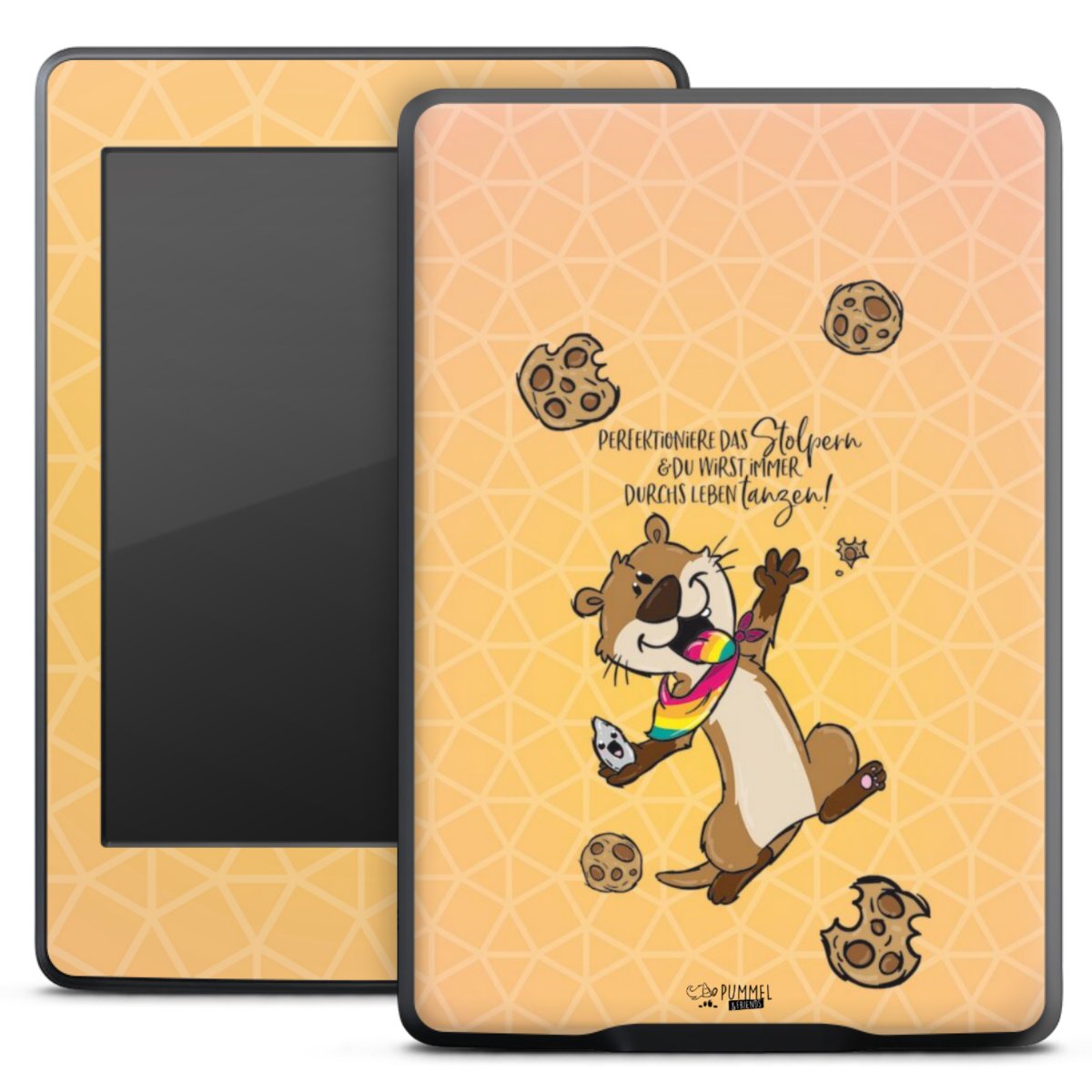 Die langlebige Premium Vinyl-Folie wird durch ein mattes Schutzlaminat verstärkt und hält somit Dein E-Reader, egal ob Vorder- oder Rückseite, frei von Kratzern. Die Premium-Folie ist hauchdünn und trägt kaum auf. Die Grundfarbe der Folie ist weiß.