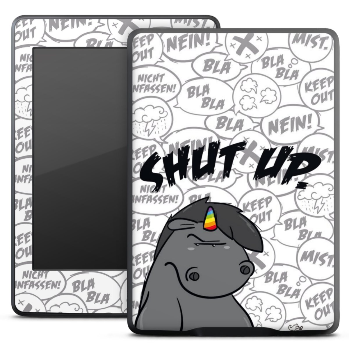 Die langlebige Premium Vinyl-Folie wird durch ein mattes Schutzlaminat verstärkt und hält somit Dein E-Reader, egal ob Vorder- oder Rückseite, frei von Kratzern. Die Premium-Folie ist hauchdünn und trägt kaum auf. Die Grundfarbe der Folie ist weiß.