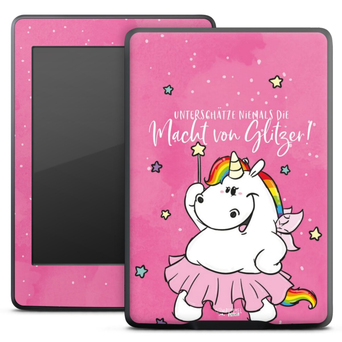 Mit den neuen Motiven des Kulteinhorns und den magischen Wesen aus der Glitzerwelt kannst Du Deine Alltagsbegleiter wie Dein Handy, Laptop oder Deine Spielekonsole bunt färben und eine extra Portion Freude verbreiten. Jeder Charakter hat seine individuellen Eigenarten und vertritt besondere Werte, wie Toleranz, Akzeptanz, Durchhaltevermögen und viele andere.