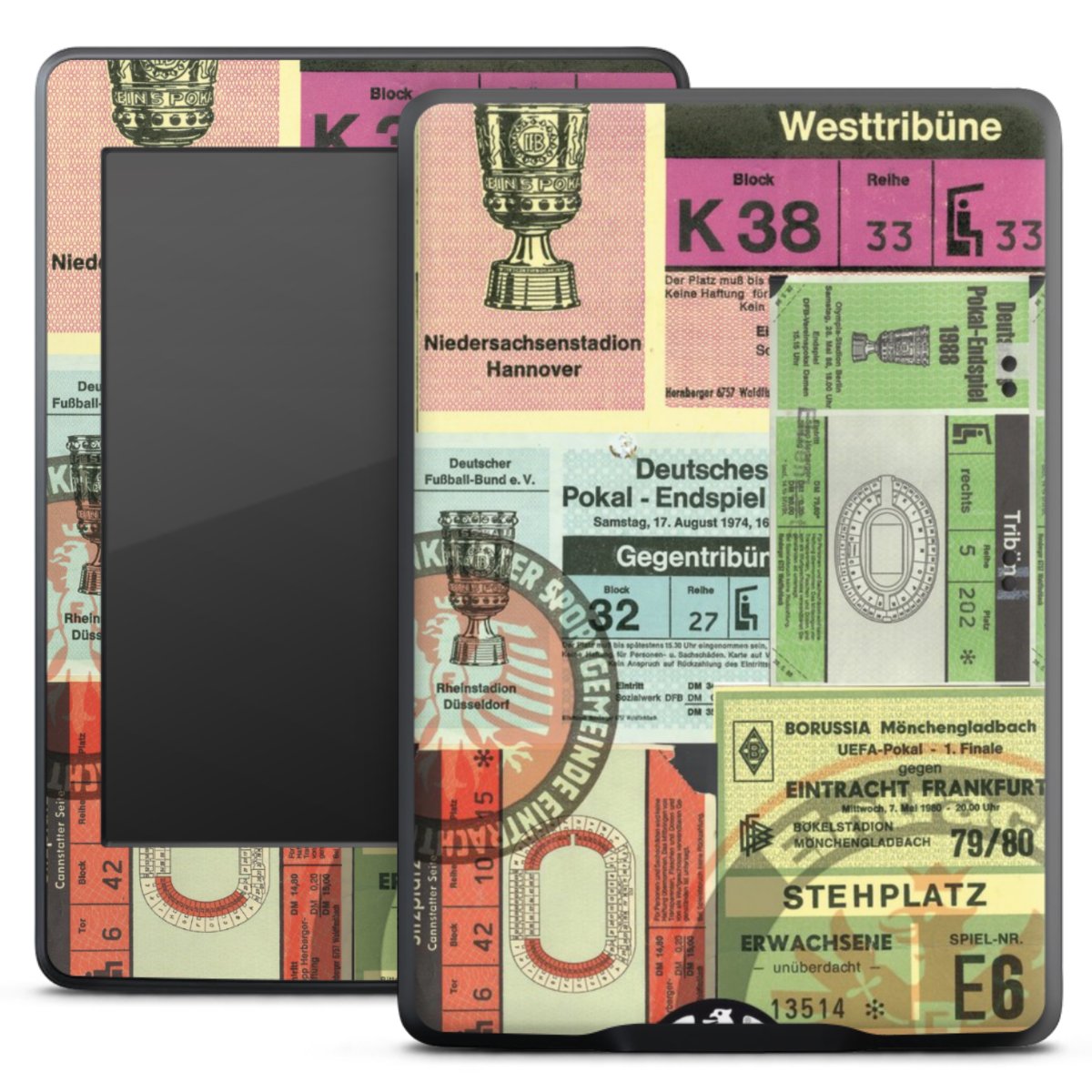 Bei dieser Vinyl-Folie nutzen wir das solide Direktdruck-Verfahren mit einer anschließenden matten Laminierung. Der Druckbereich umfasst den ganzen Bereich. Die E-Reader-Folie kann sowohl unbedruckt, als auch vollflächig oder partiell bedruckt bestellt werden.