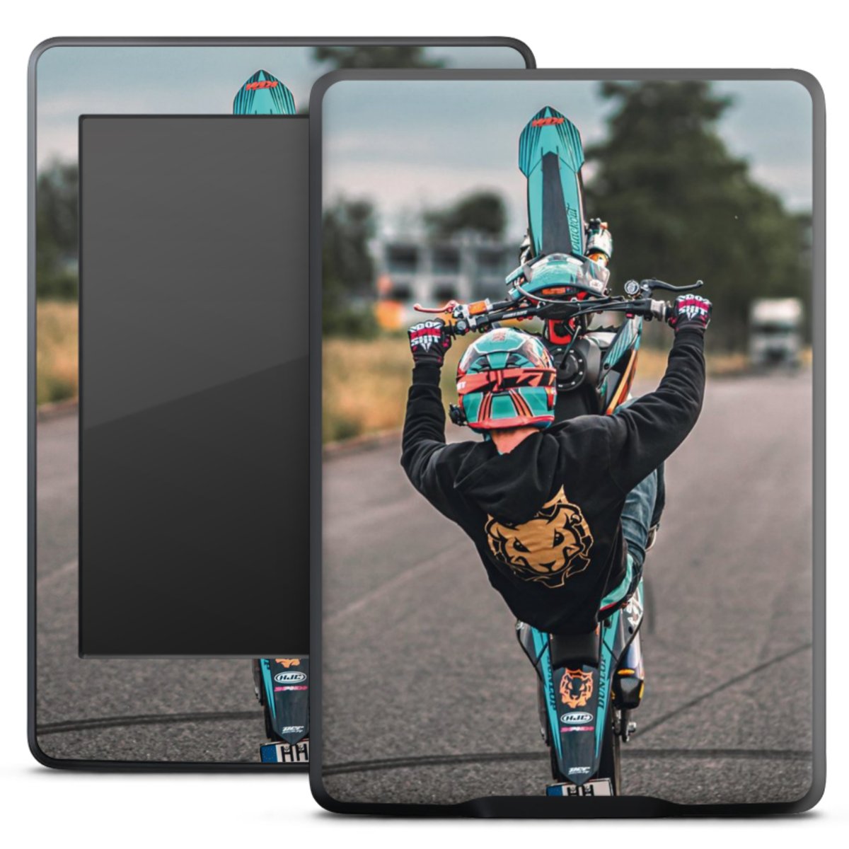 Bei dieser Vinyl-Folie nutzen wir das solide Direktdruck-Verfahren mit einer anschließenden matten Laminierung. Der Druckbereich umfasst den ganzen Bereich. Die E-Reader-Folie kann sowohl unbedruckt, als auch vollflächig oder partiell bedruckt bestellt werden.