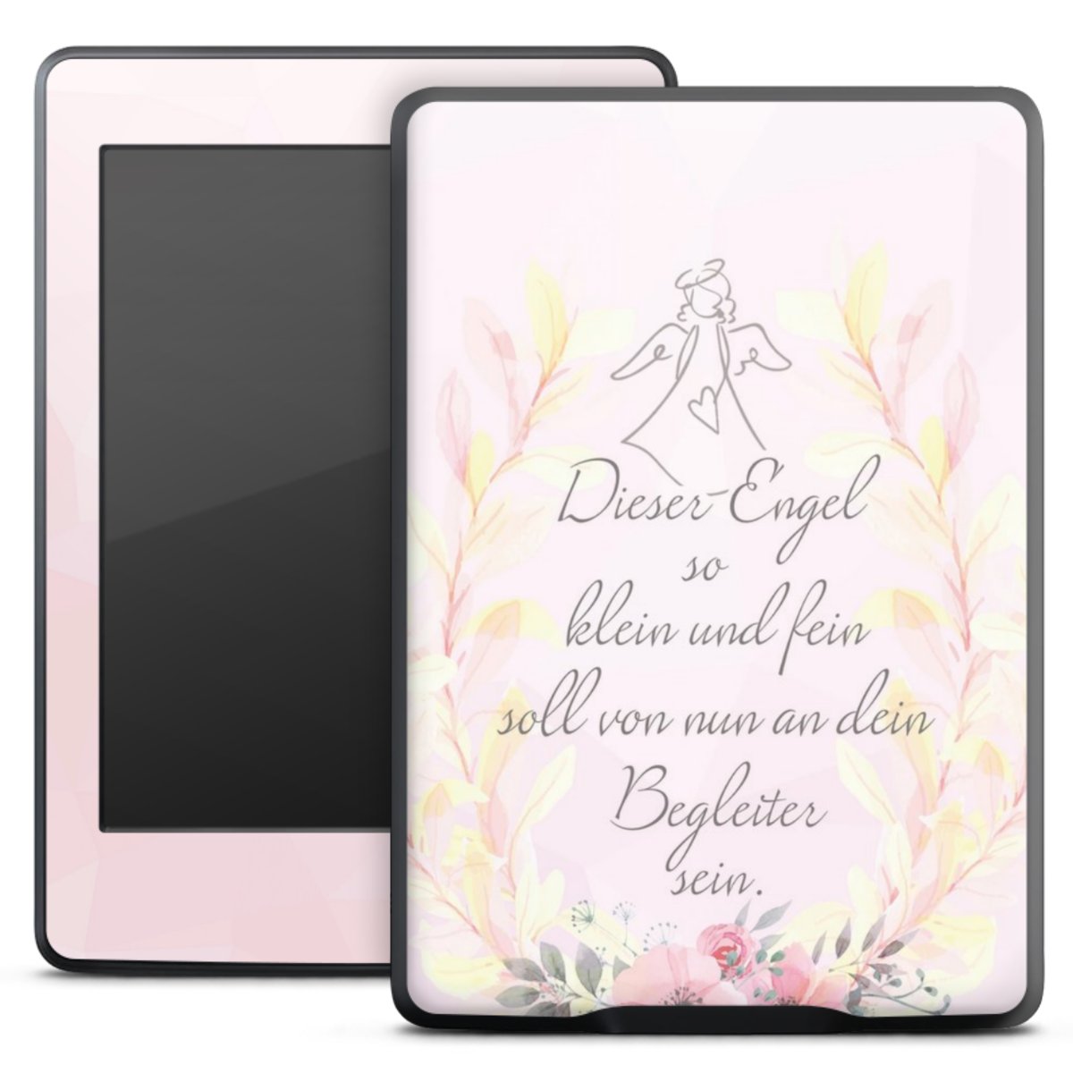 Die langlebige Premium Vinyl-Folie wird durch ein mattes Schutzlaminat verstärkt und hält somit Dein E-Reader, egal ob Vorder- oder Rückseite, frei von Kratzern. Die Premium-Folie ist hauchdünn und trägt kaum auf. Die Grundfarbe der Folie ist weiß.