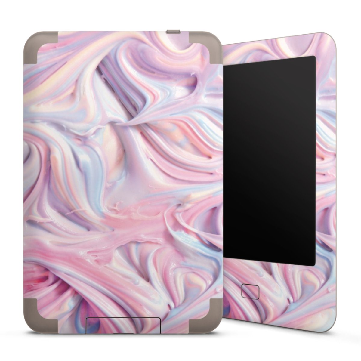 Die langlebige Premium Vinyl-Folie wird durch ein mattes Schutzlaminat verstärkt und hält somit Dein E-Reader, egal ob Vorder- oder Rückseite, frei von Kratzern. Die Premium-Folie ist hauchdünn und trägt kaum auf. Die Grundfarbe der Folie ist weiß.