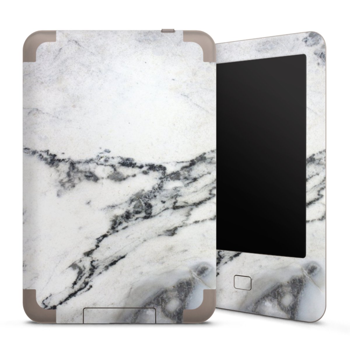Die langlebige Premium Vinyl-Folie wird durch ein mattes Schutzlaminat verstärkt und hält somit Dein E-Reader, egal ob Vorder- oder Rückseite, frei von Kratzern. Die Premium-Folie ist hauchdünn und trägt kaum auf. Die Grundfarbe der Folie ist weiß.