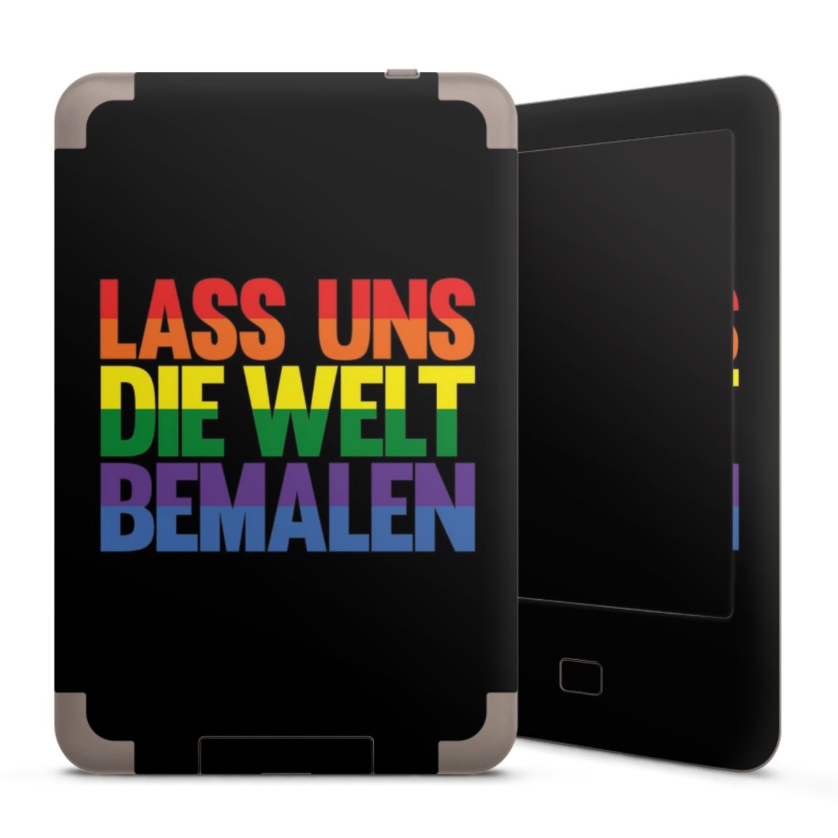 Bei dieser Vinyl-Folie nutzen wir das solide Direktdruck-Verfahren mit einer anschließenden matten Laminierung. Der Druckbereich umfasst den ganzen Bereich. Die E-Reader-Folie kann sowohl unbedruckt, als auch vollflächig oder partiell bedruckt bestellt werden.