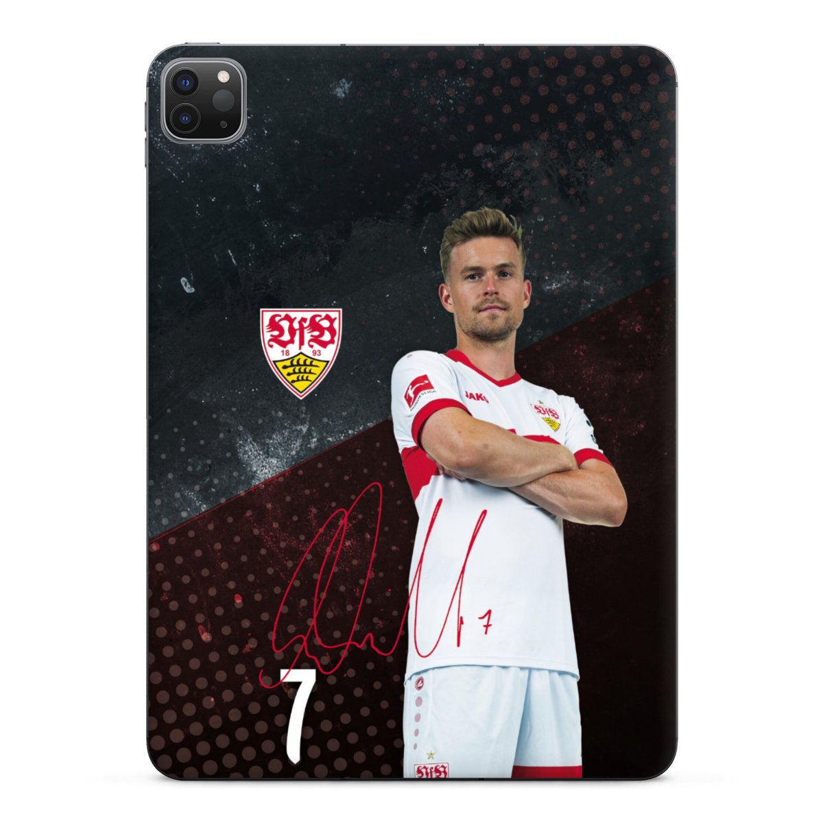 Das Vereinswappen des VfB Stuttgart auf der eigenen Hülle