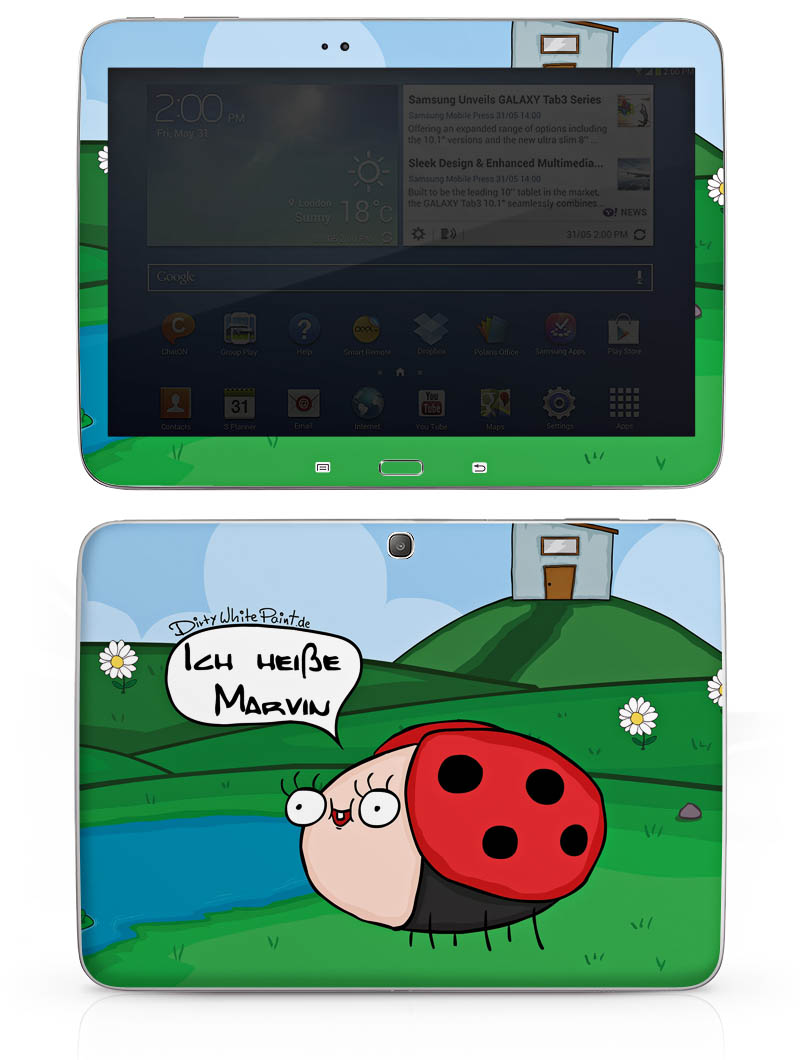 Die langlebige Premium Vinyl-Folie wird durch ein mattes Schutzlaminat verstärkt und hält somit Dein Tablet frei von Kratzern. Die Premium-Folie ist hauchdünn und trägt kaum auf, egal ob Vorder- oder Rückseite Deines Smartphones. Die Grundfarbe der Folie ist weiß.
