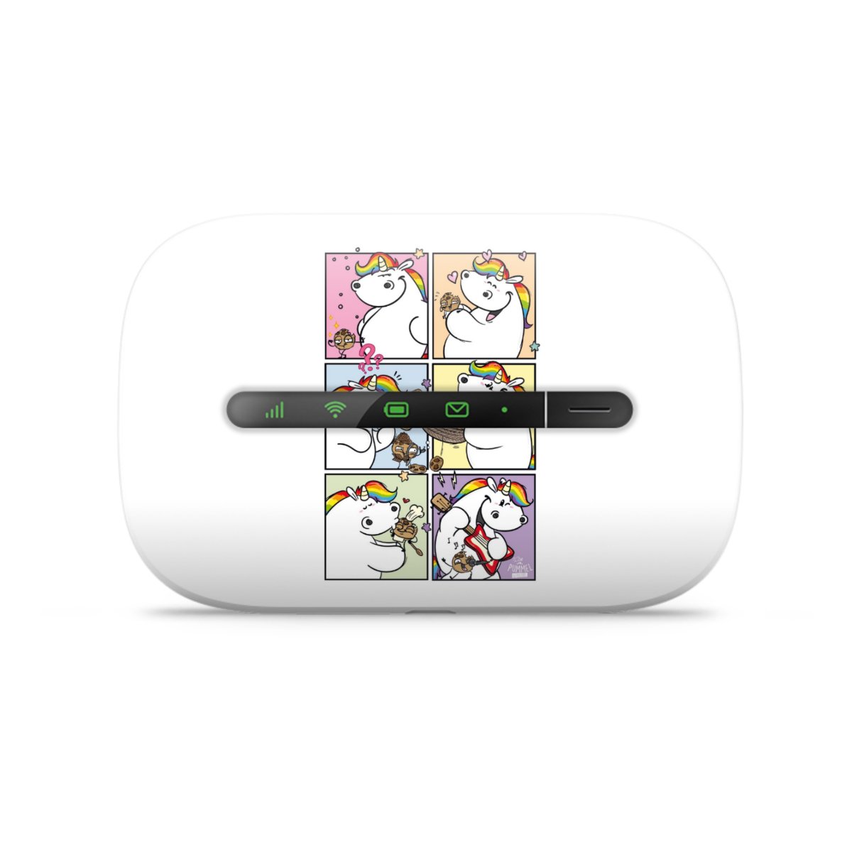 Das flauschige Pummeleinhorn hat ein Herz aus Gold und die Hände stets voller Cookies. In der Glitzerwelt lebt es zusammen mit seinen Freunden und genießt das Leben in vollen Zügen. Getreu dem Motto „Be real, not perfect!“ kann sich hier jeder wohlfühlen und wird für keine Macke verurteilt.