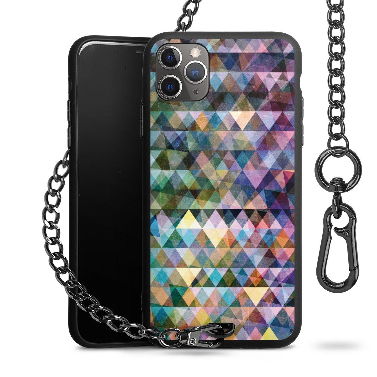 • Mattschwarze Handyhülle mit Metallkette