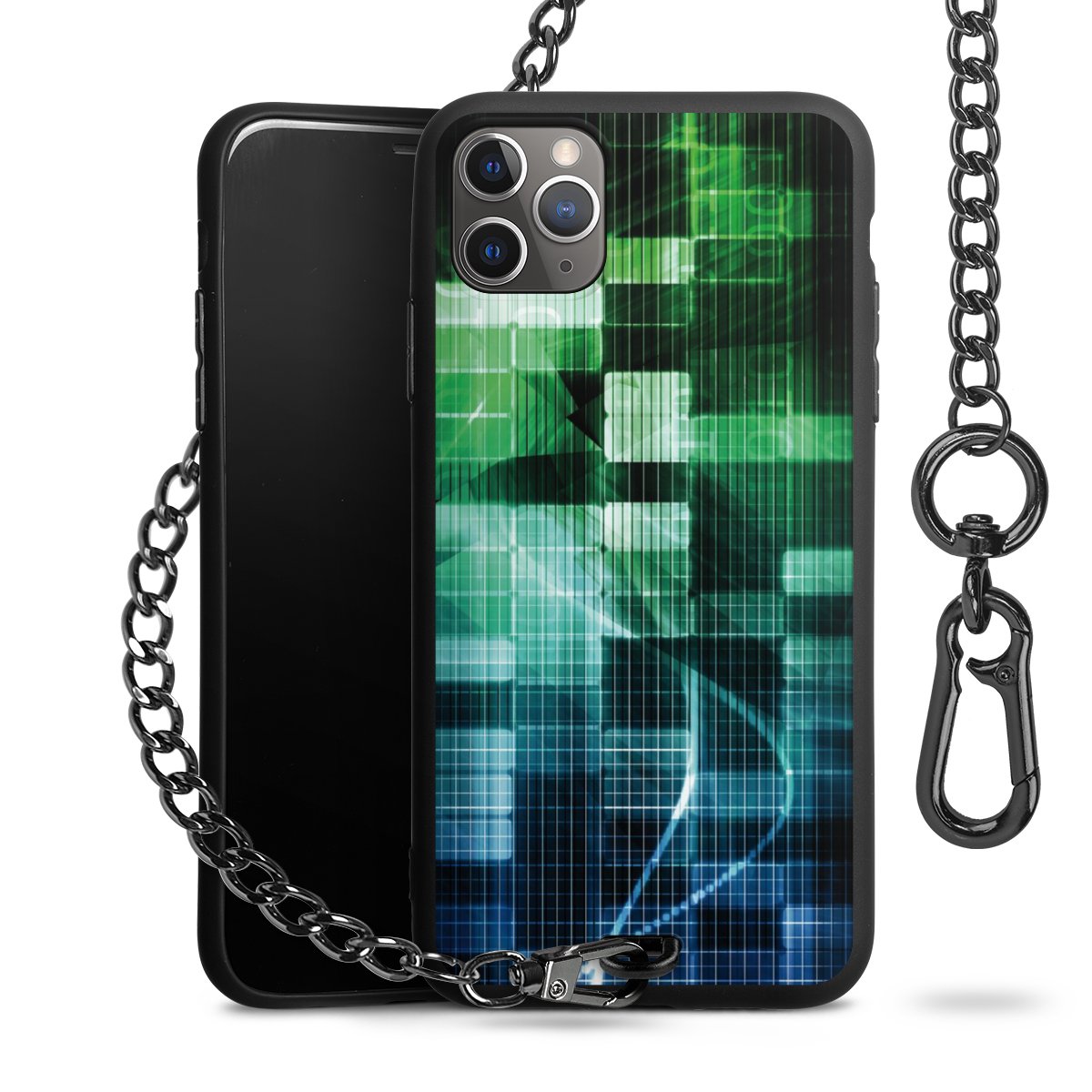 - Mattschwarze Handyhülle mit Metallkette