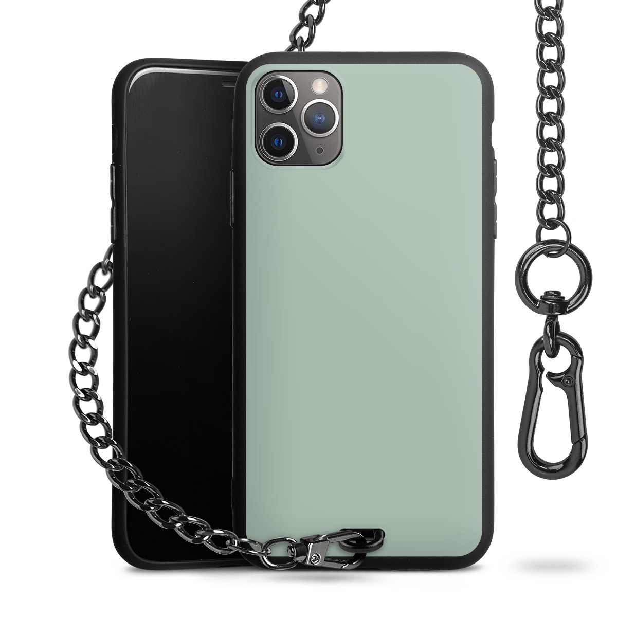 - Mattschwarze Handyhülle mit Metallkette