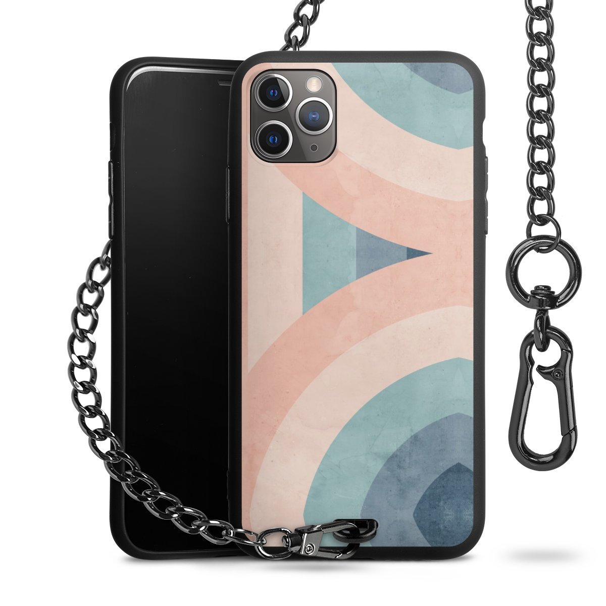 • Mattschwarze Handyhülle mit Metallkette