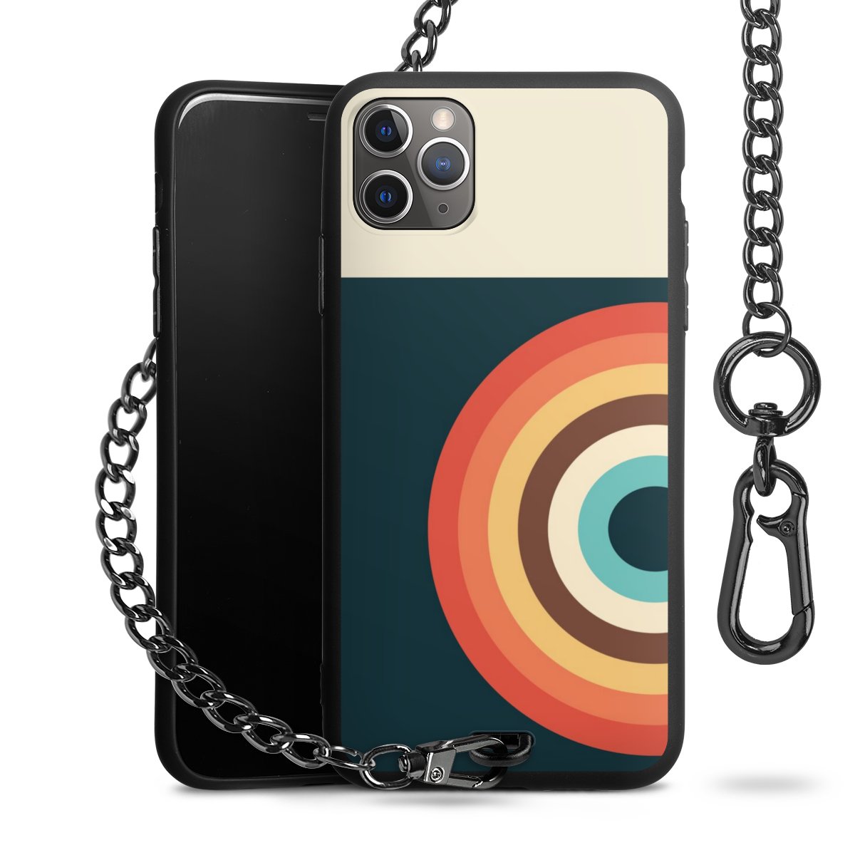 - Mattschwarze Handyhülle mit Metallkette