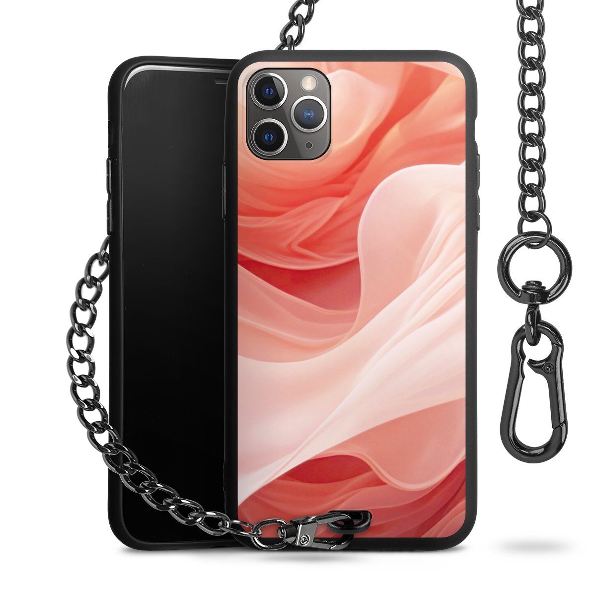 • Mattschwarze Handyhülle mit Metallkette