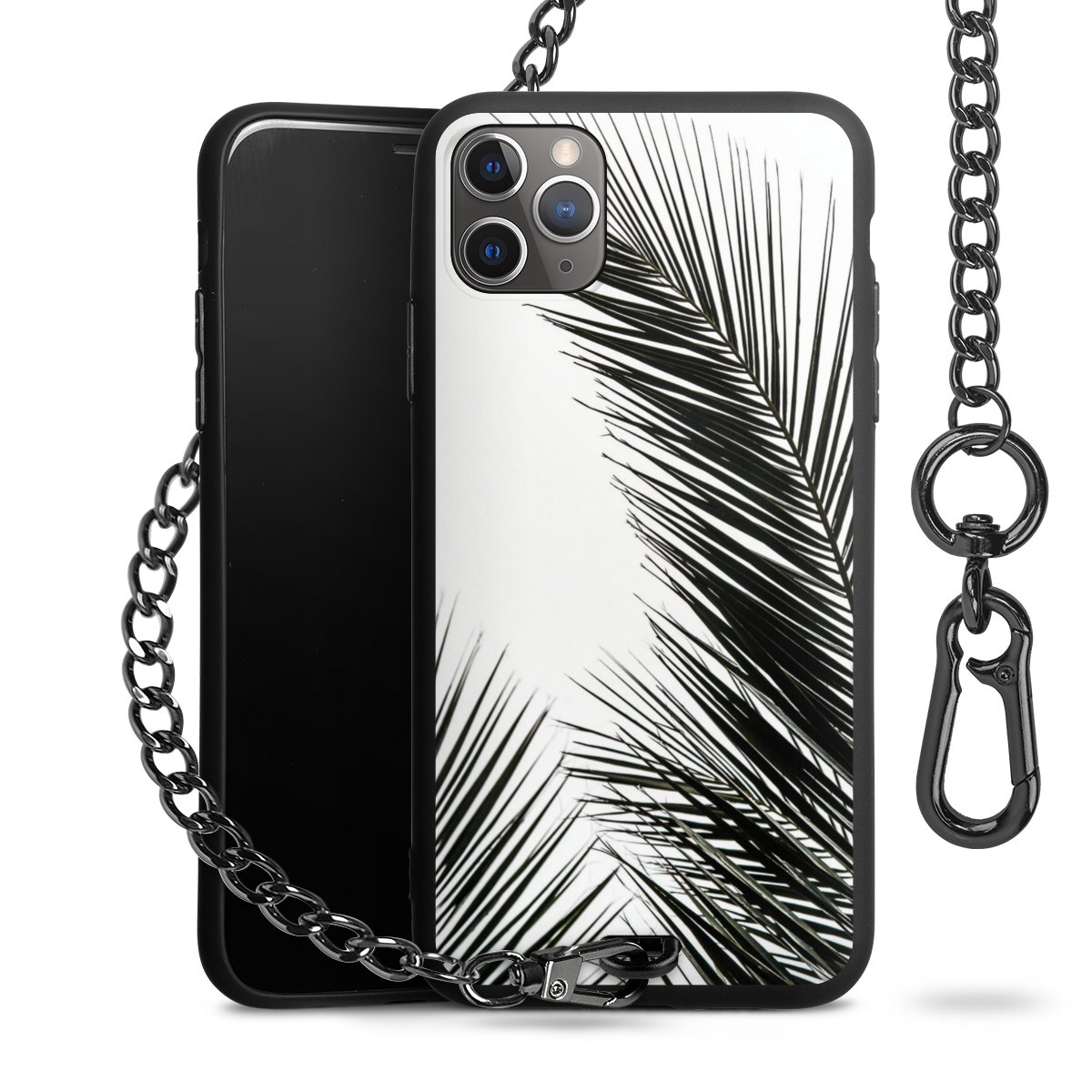 • Mattschwarze Handyhülle mit Metallkette