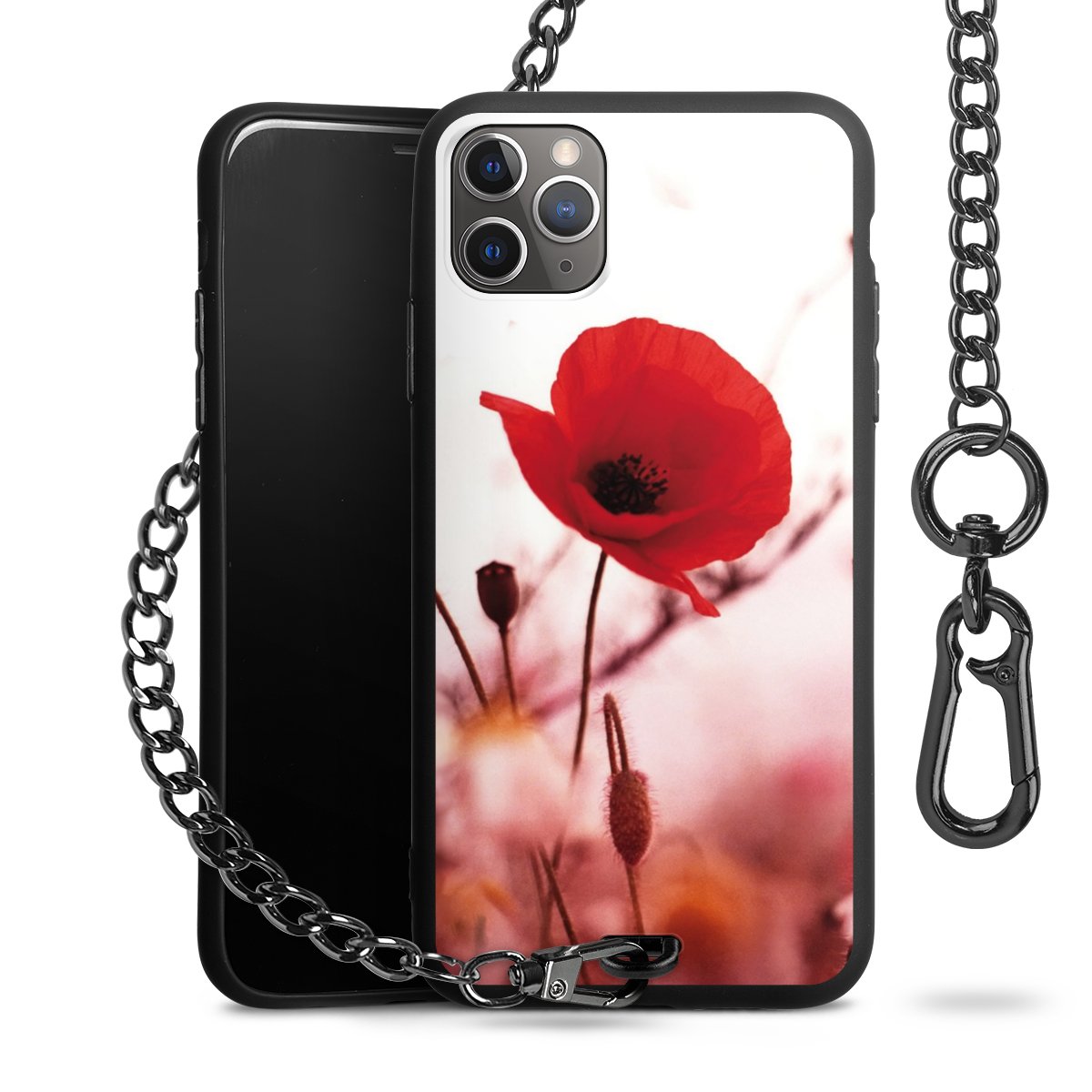 - Mattschwarze Handyhülle mit Metallkette