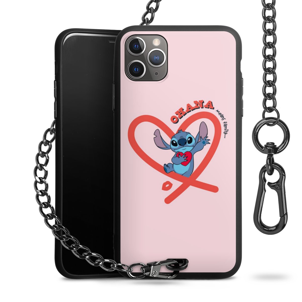 • Mattschwarze Handyhülle mit Metallkette