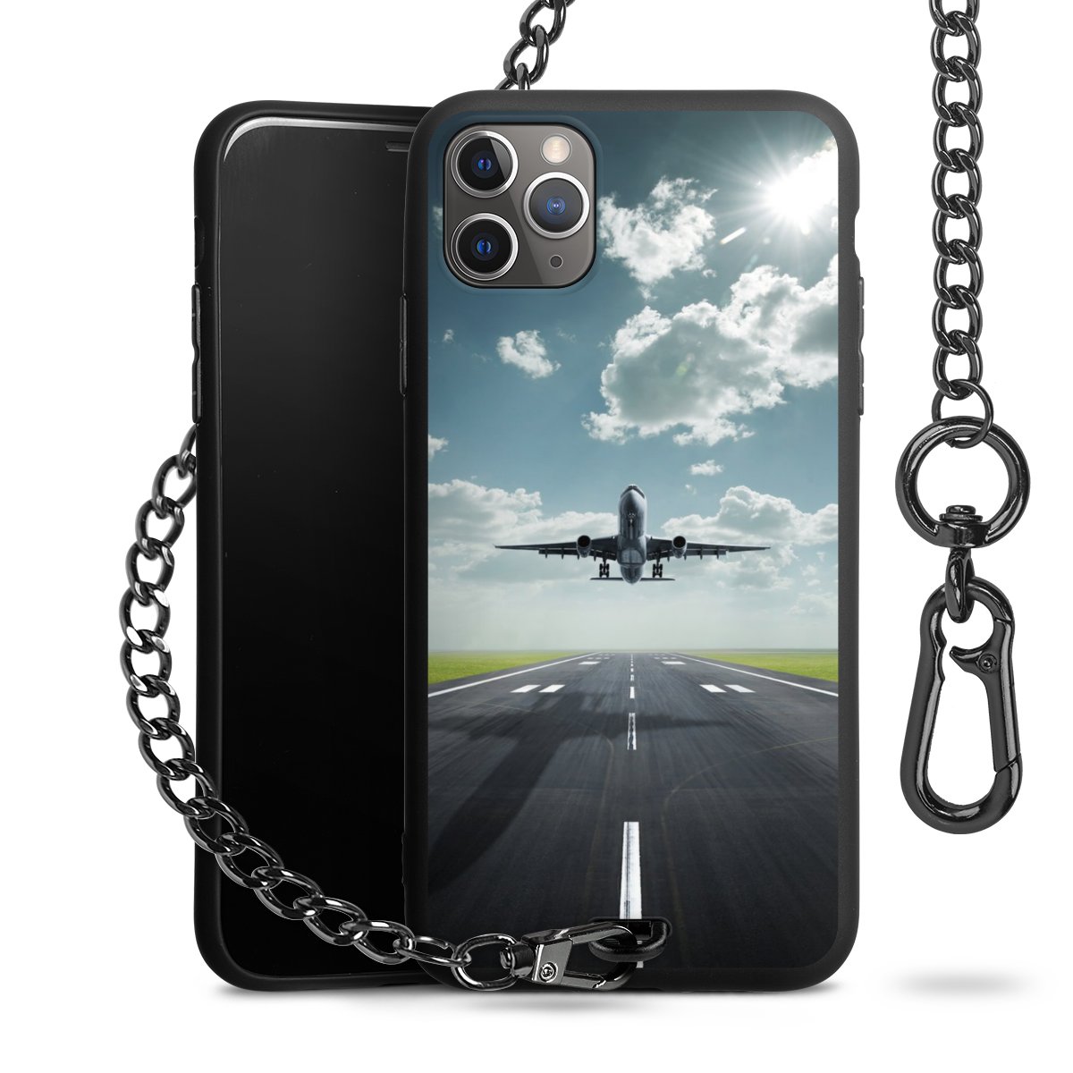 - Mattschwarze Handyhülle mit Metallkette