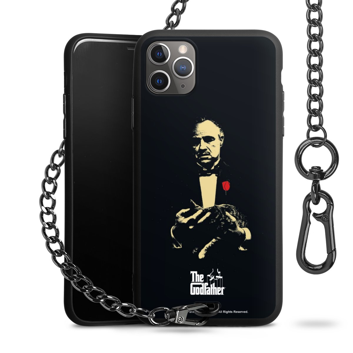 - Mattschwarze Handyhülle mit Metallkette
