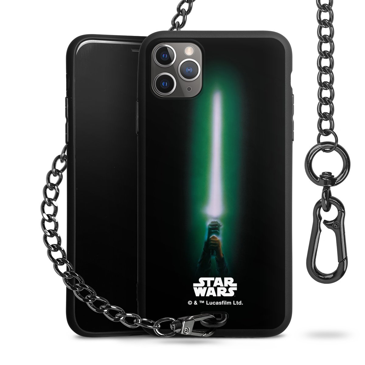 • Mattschwarze Handyhülle mit Metallkette