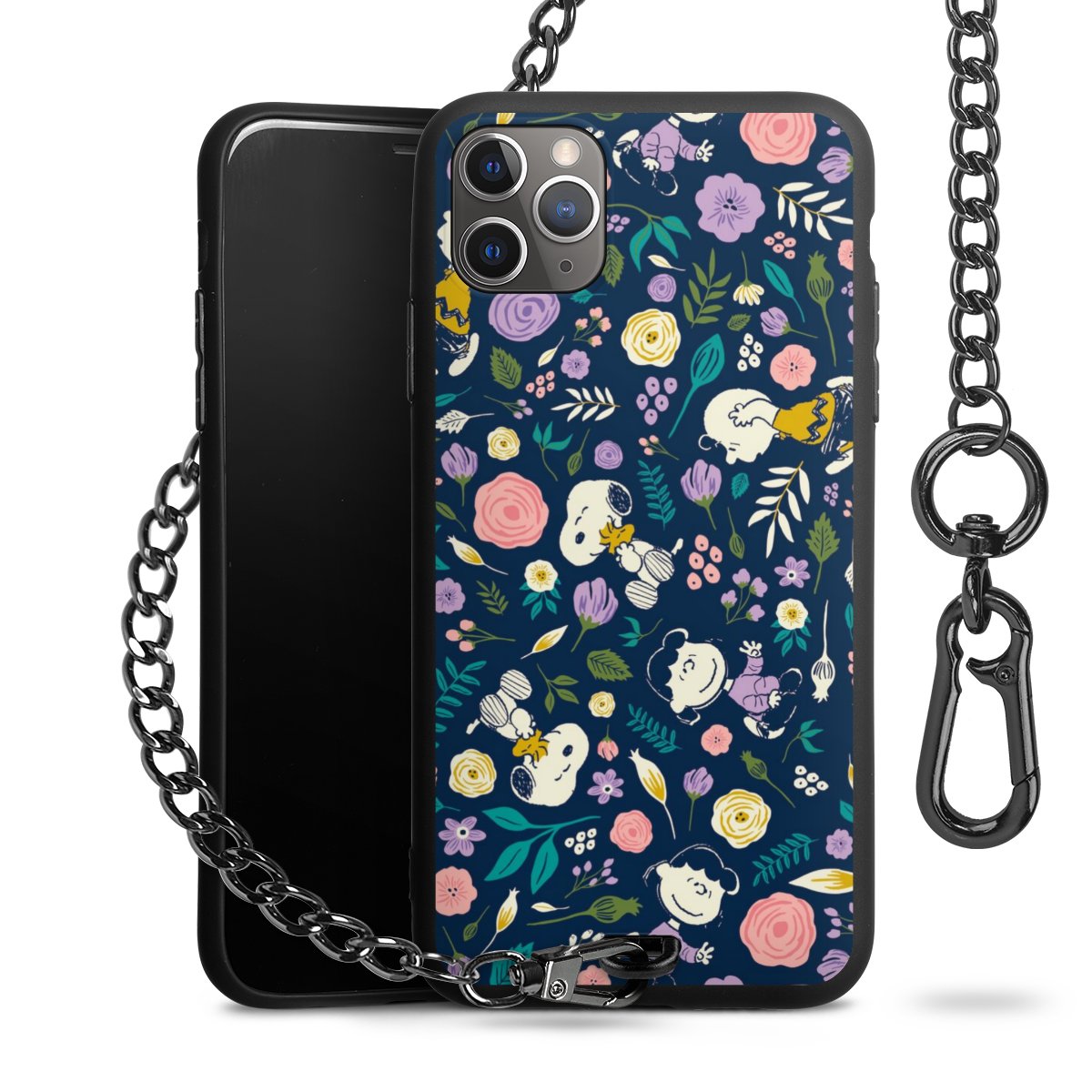• Mattschwarze Handyhülle mit Metallkette
