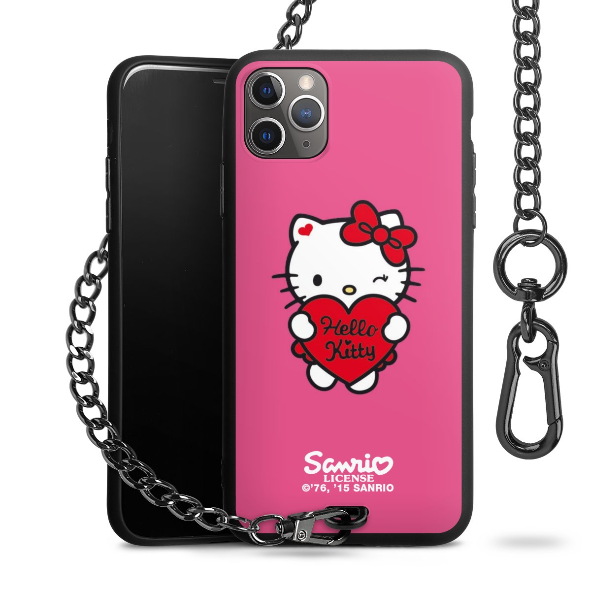Die mattschwarze Silikon-Handyhülle besteht aus robustem TPU (thermoplastisches Polyurethan). Sie ist flexibel und schützt Dein Smartphone vor Stößen und Kratzern. Die Kette sowie der Karabinerhaken sind aus Metall in Gunmetal-Optik gefertigt. Für dieses Produkt kommen ausschließlich TÜV-geprüfte Materialien zum Einsatz.