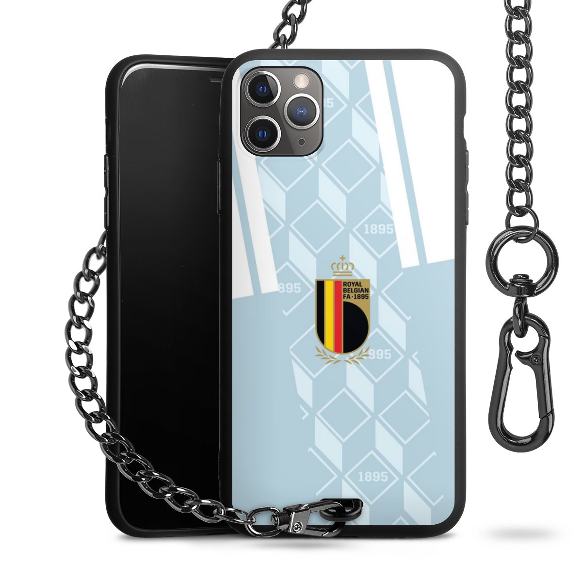 Die mattschwarze Silikon-Handyhülle besteht aus robustem TPU (thermoplastisches Polyurethan). Sie ist flexibel und schützt Dein Smartphone vor Stößen und Kratzern. Die Kette sowie der Karabinerhaken sind aus Metall in Gunmetal-Optik gefertigt. Für dieses Produkt kommen ausschließlich TÜV-geprüfte Materialien zum Einsatz.
