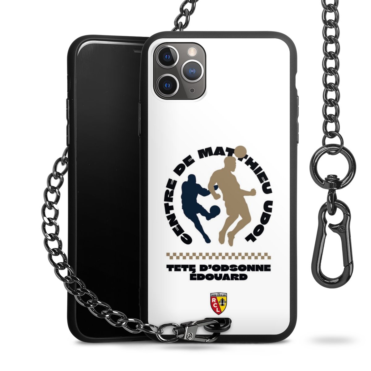 • Mattschwarze Handyhülle mit Metallkette