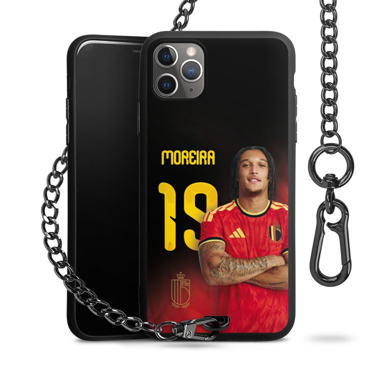 - Mattschwarze Handyhülle mit Metallkette
