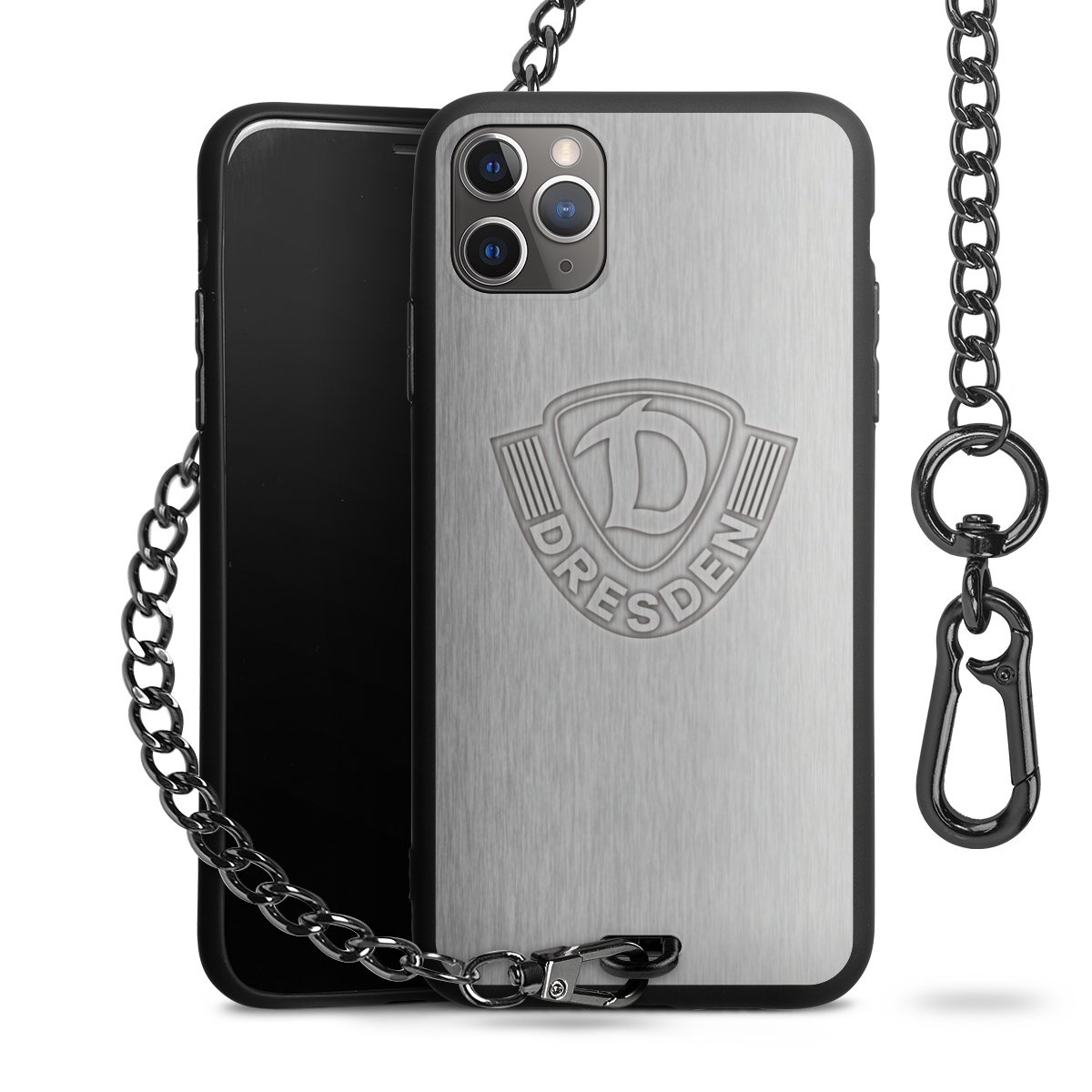 • Mattschwarze Handyhülle mit Metallkette